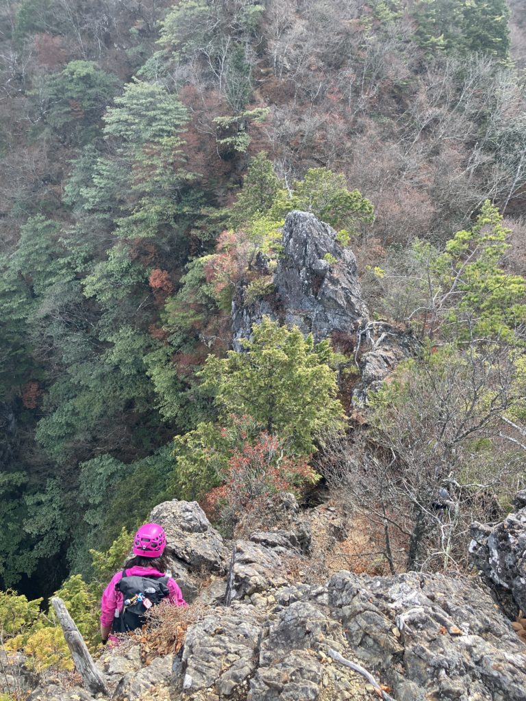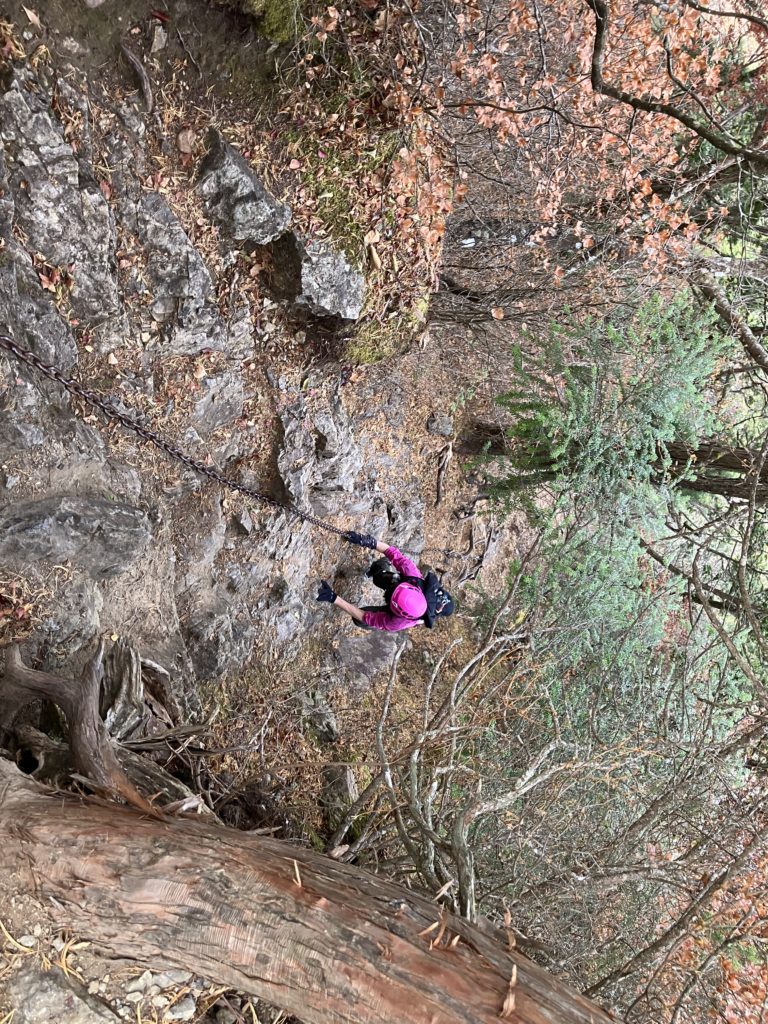 細い岩稜と長い鎖場が連続し、時には高度感のある場所も登場します。